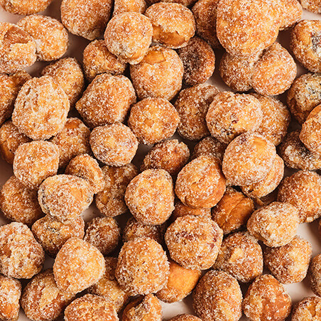 Riche de notre savoir-faire de confiseur, nous avons décidé de développer de nouvelles gourmandises. La gamme de confiserie s’est agrandie, pour le plaisir de tous, avec l’arrivée des Espelines® en 2017. Les amandes Marconas, réputées dans le monde entier pour leur saveur incroyable et leur douceur incomparable, sont caramélisées avec une légère pointe de piment d’Espelette. Le piment agit ici comme exhausteur de goût. Il est faiblement dosé pour faire des Espelines® une gourmandise pour tous !