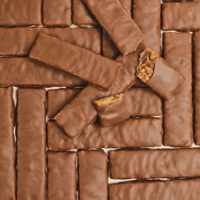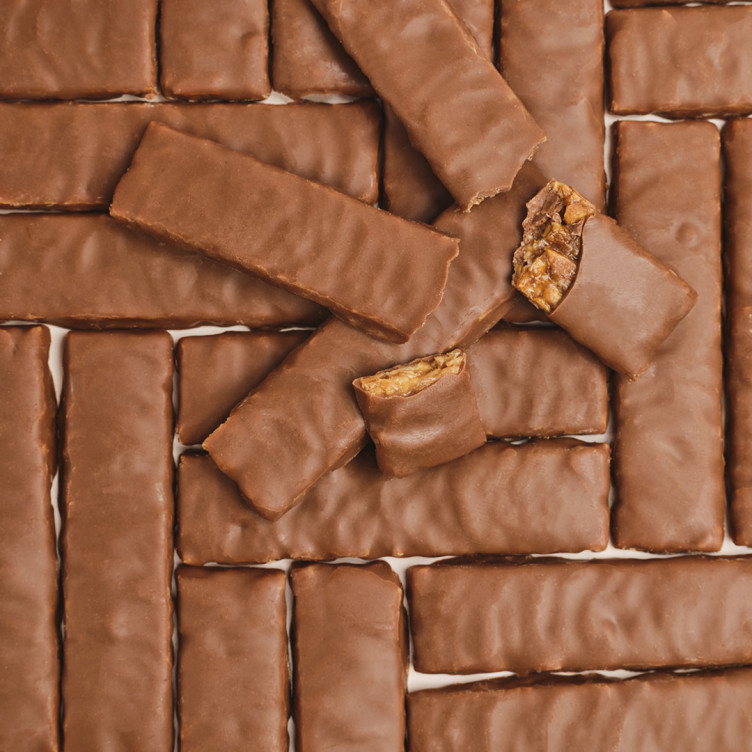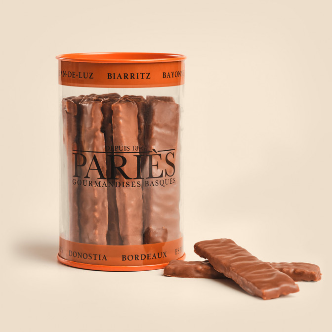 Ingrédients : Amandes effilées (47%), sucre, beurre, sirop de glucose, beurre de cacao, poudre de lait, pâte de cacao 100% , émulsifiant : lécithine de soja, arôme naturel de vanille.