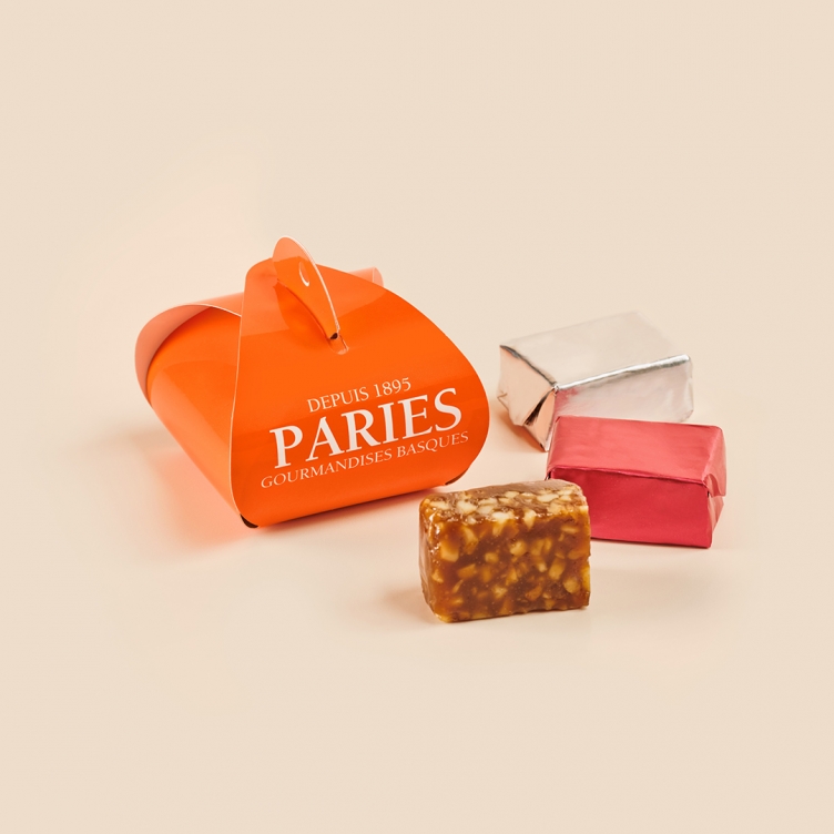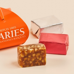 La plus ancienne spécialité de la Maison Pariès est une création du chocolatier Jacques Damestoy. Somptueusement enrichi de noix ou noisettes, parfumé au café et à la vanille, le Kanouga est à lui seul un monde de subtilité. Il a été baptisé par la presse new-yorkaise "Meilleur caramel du Monde".