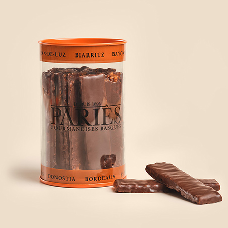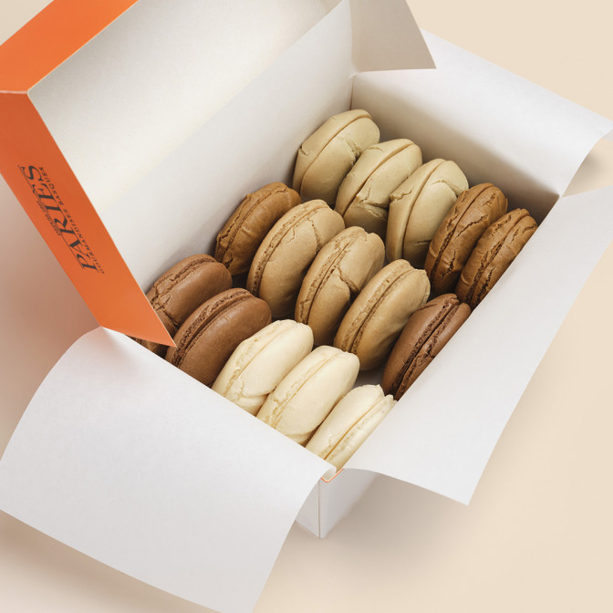 Ingrédients : Amandes, sucre, blanc d'œuf, stabilisant : sorbitol, pistaches, pâte de cacao 100%, noisettes, café, extrait de café, colorant: noir caramel
